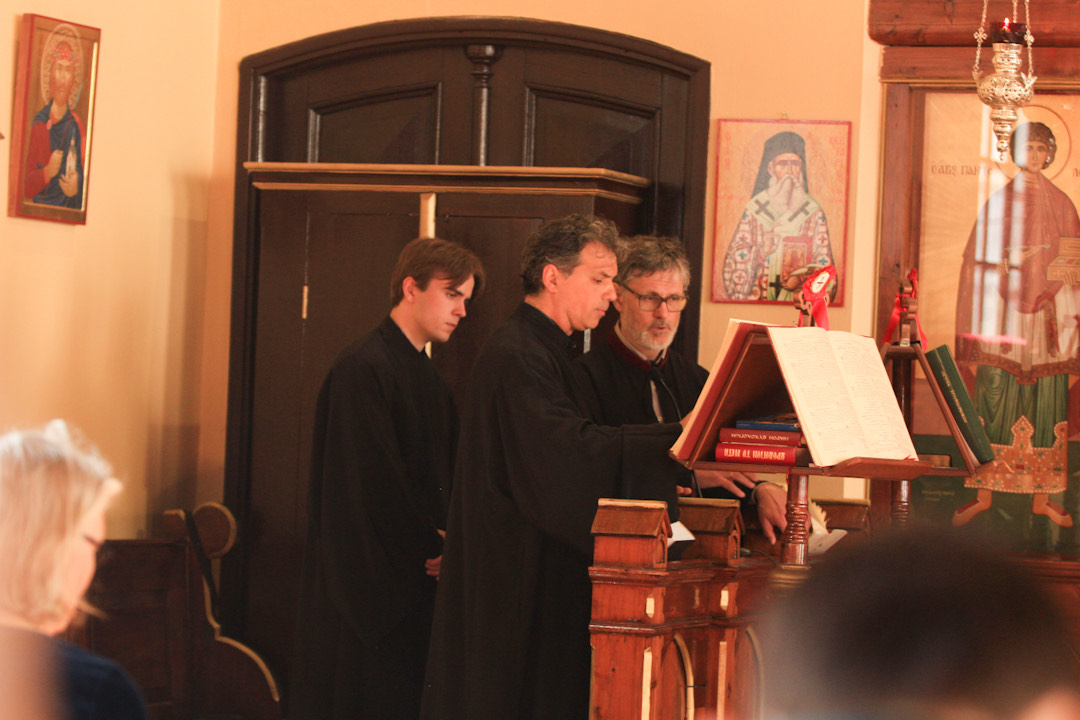 Το απόγευμα του Σαββάτου, 7 Μαΐου, ο Ποιμενάρχης χοροστάτησε στον Εσπερινό που τέλεσαν στον Μητροπολιτικό Ναό ο Παν. Αρχιμανδρίτης κ. Αλέξανδρος Λουκάτος, Προϊστάμενος, και ο βοηθός Εφημέριος Αιδ. Οικονόμος κ. Maxime Lesage.