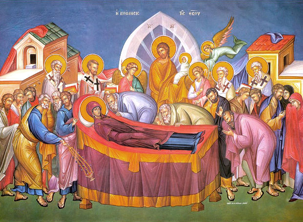 Η Παναγία μητέρα μας με την Κοίμηση και Μετάστασή Της βρίσκεται στα δεξιά του Χριστού και γρηγορεί, πρεσβεύει, επισκοπεύει και σκέπει όλους μας.