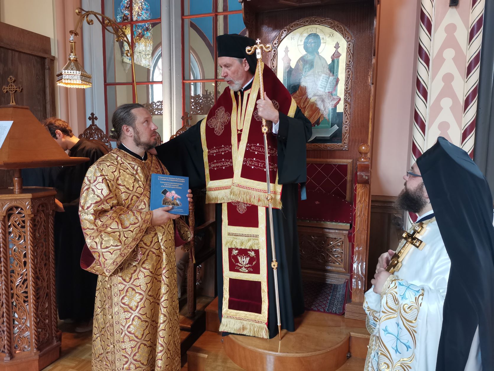 Και στους δύο επισκέπτες, ο Μητροπολίτης Κλεόπας επέδωσε τον προσφάτως εκδοθέντα τόμο από την Αποστολική Διακονία της Εκκλησίας της Ελλάδος, αφιερωμένο στην Πατριαρχική Επίσκεψη του Παναγιωτάτου Οικουμενικού Πατριάρχου κ.κ. Βαρθολομαίου στην Στοκχόλμη, το 2019.