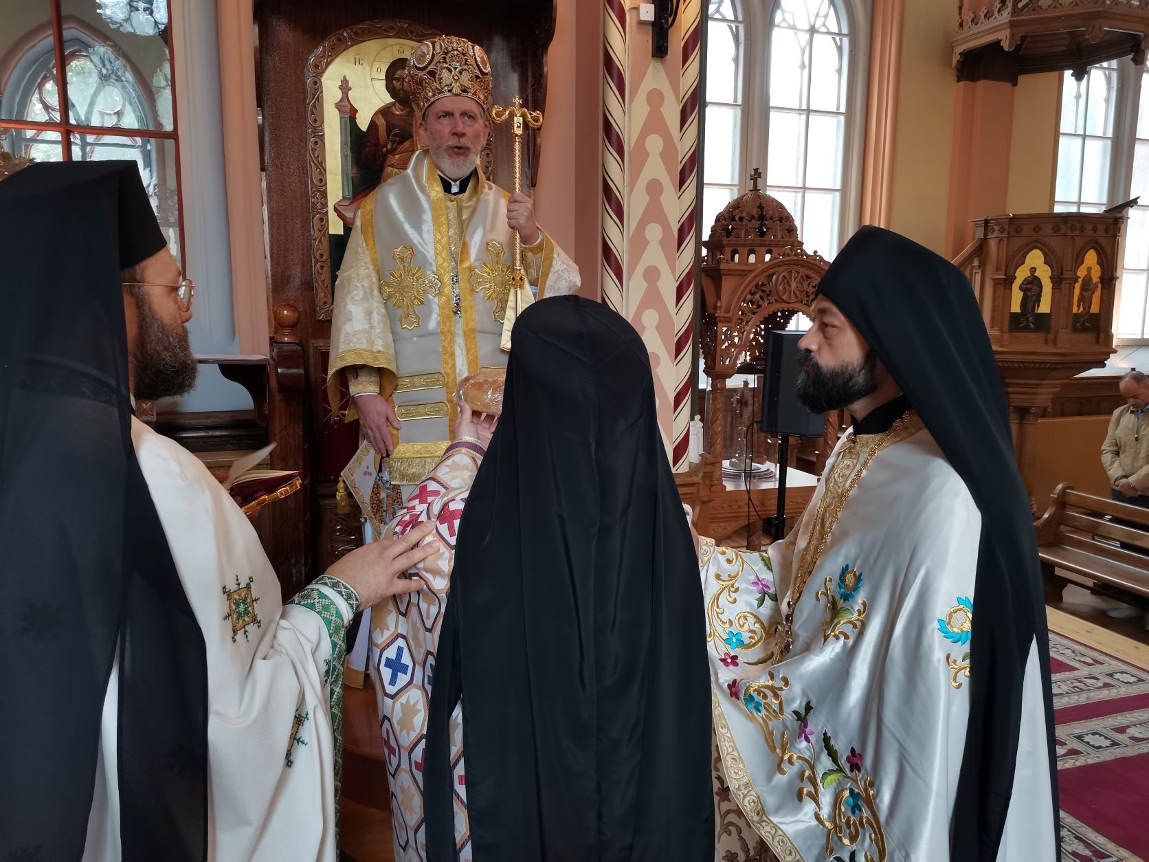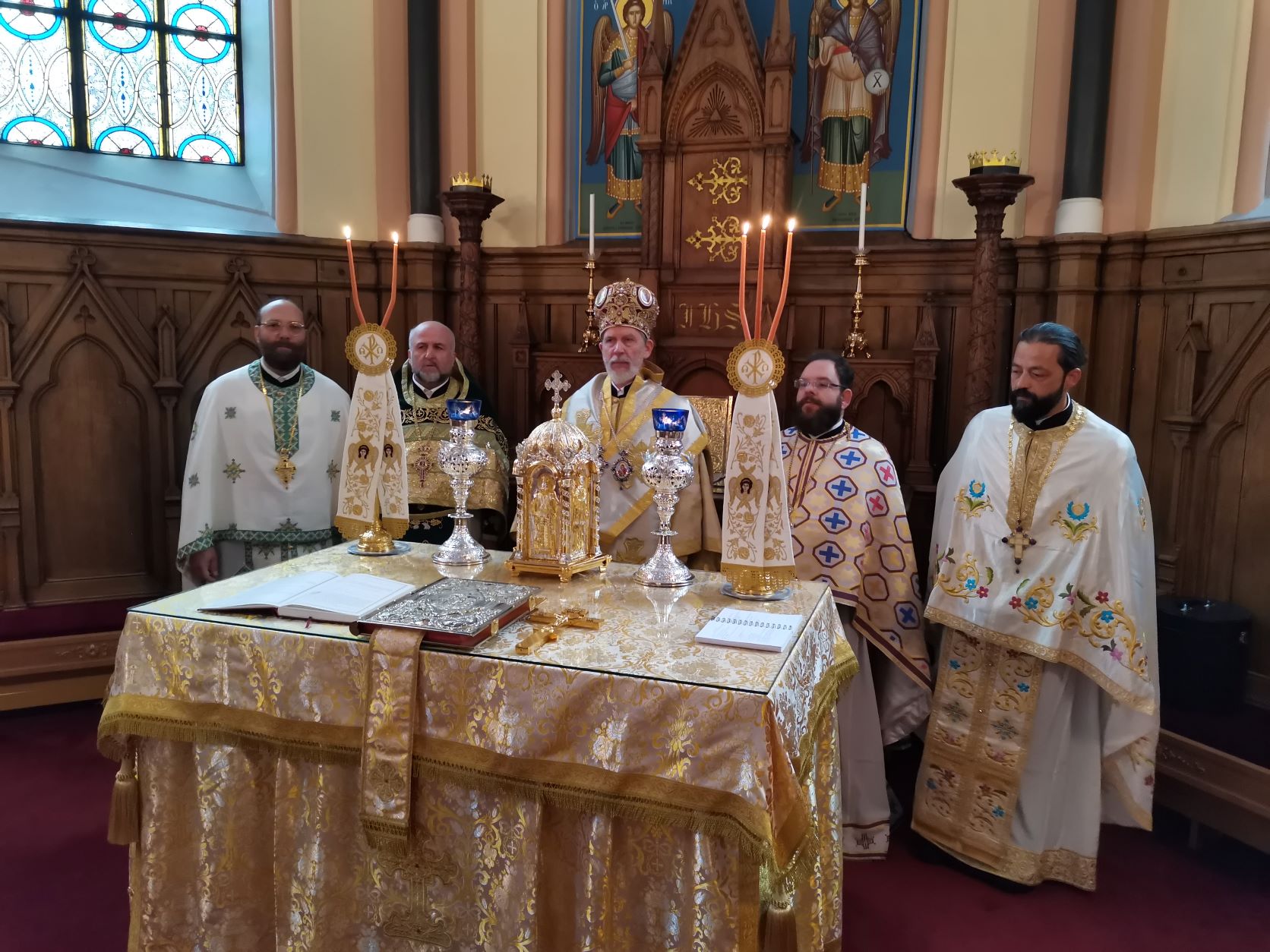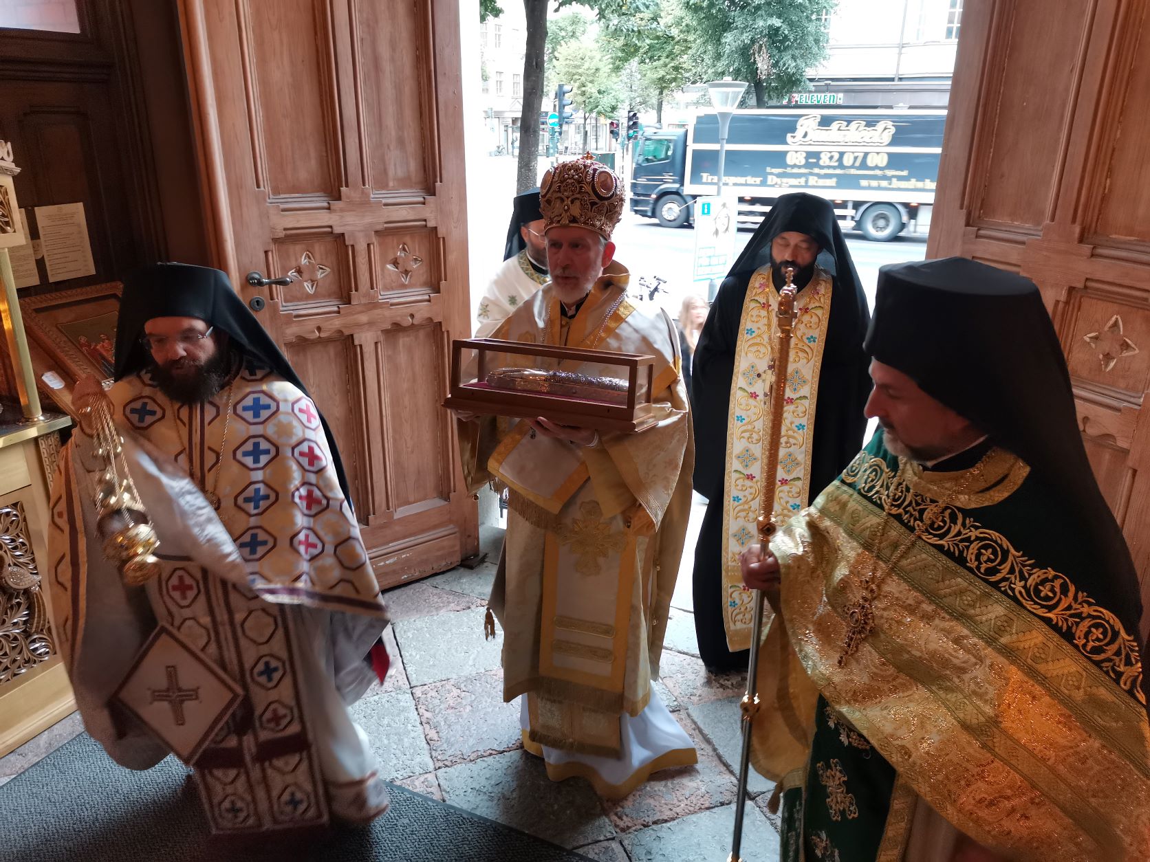 Εισοδεύσαντες στον Καθεδρικό Ναό του Αγίου Γεωργίου Στοκχόλμης το ιερό σέβασμα της αμωμήτου πίστεώς μας, κλίνουμε γόνυ ψυχής και σώματος, για να λάβουμε χάριν από τον άγιο, τον καταξιωθέντα μεγάλων δωρεών και χαρισμάτων διαχρονικών.