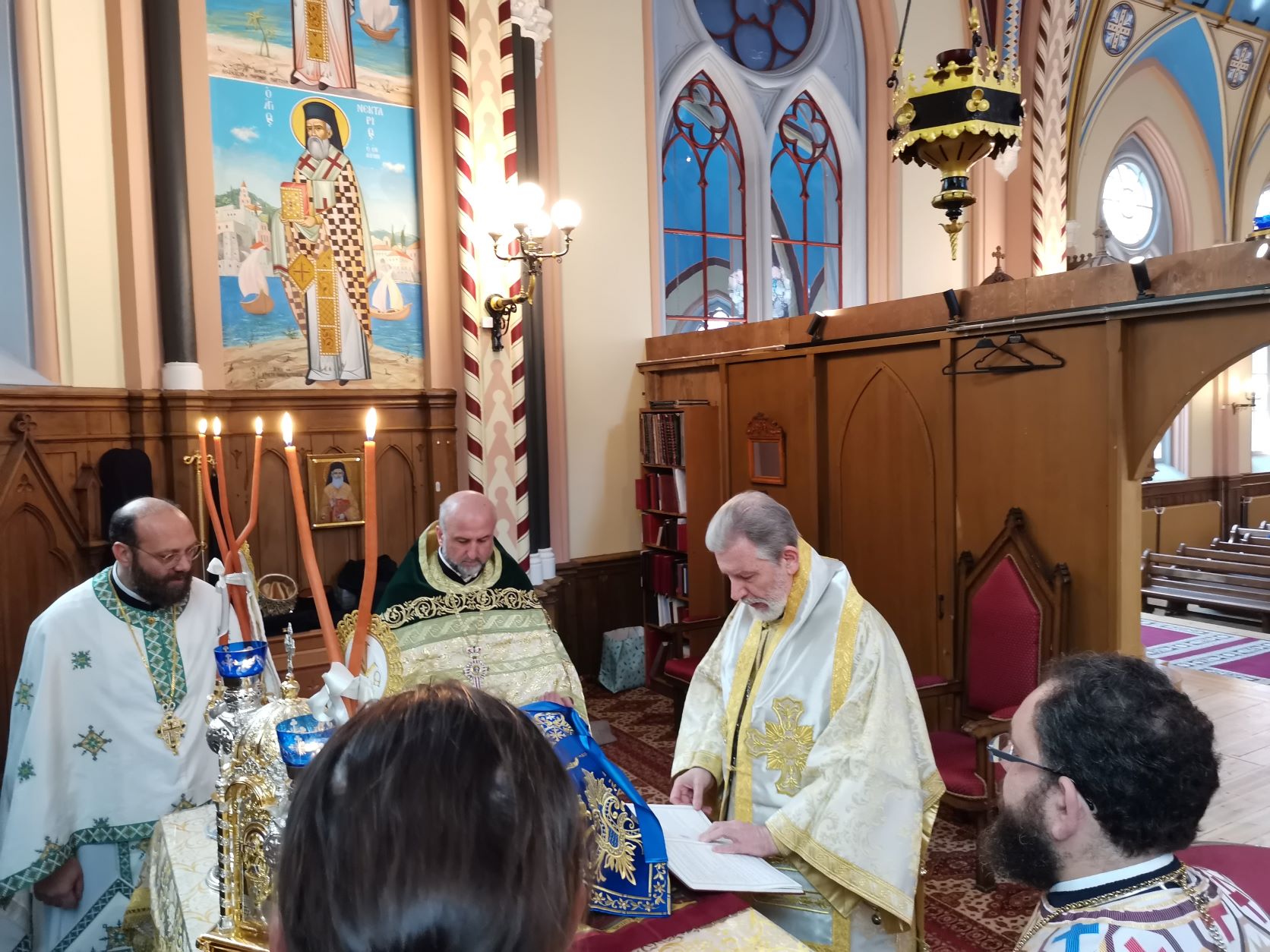Ας δοξάσουμε, λοιπόν, Πατέρες και Αδελφοί μου, τον εν Τριάδι προσκυνούμενο Θεό, που μάς χάρισε στους ύστερους καιρούς έναν θαυματουργό άγιο, πρότυπο ποιμένος. Ας Τον ευχαριστήσουμε, επίσης, γι’ αυτή την ευκαιρία πνευματικού ανεφοδιασμού, που μάς χάρισε τις μέρες αυτές, καθώς αρχίσαμε το προσκύνημα του ιερού λειψάνου προχθές από το Μητροπολιτικό Ναό Ευαγγελισμού της Θεοτόκου Όσλο, συνεχίσαμε χθες στην ενορία του Αποστόλου Παύλου Ουψάλας και καταλήξαμε σήμερα, ανήμερα της εορτής της ανακομιδής των ιερών λειψάνων του Αγίου Νεκταρίου, στον Καθεδρικό Ναό της Στοκχόλμης.