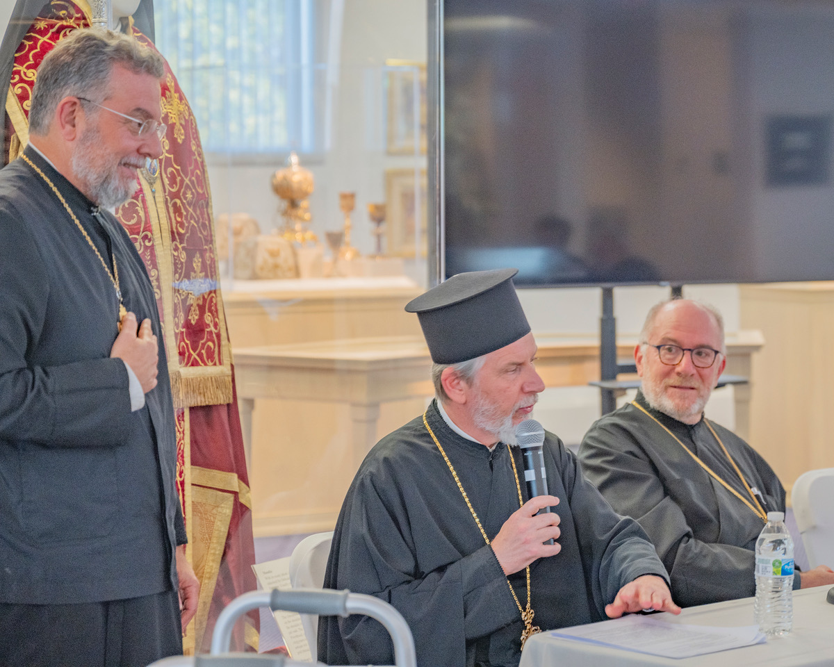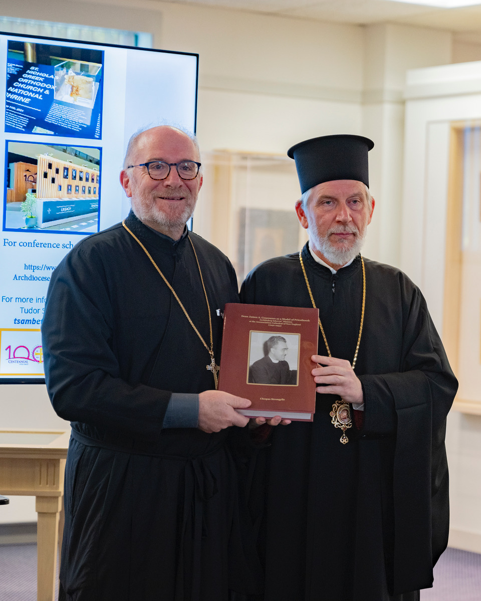 Στο τέλος της ομιλίας του, ο Επίσκοπος συνεχάρη τους διοργανωτές του συνεδρίου Πανοσιολ. Αρχιμανδρίτη Dr. Anton Vrame και Dr. James Skedros και προσέφερε αντίτυπα της μελέτης του για τον Αρχιεπίσκοπο Ιάκωβο στον Σεβ. Αρχιεπίσκοπο Αμερικής κ. Ελπιδοφόρο, τον Πρόεδρο της Θεολογικής Σχολής κ. George M. Cantonis, στον Dr. James Skedros και στον Καθηγητή του Haverford College Ελλογ. κ. Αλέξανδρο Κιτροέφ.