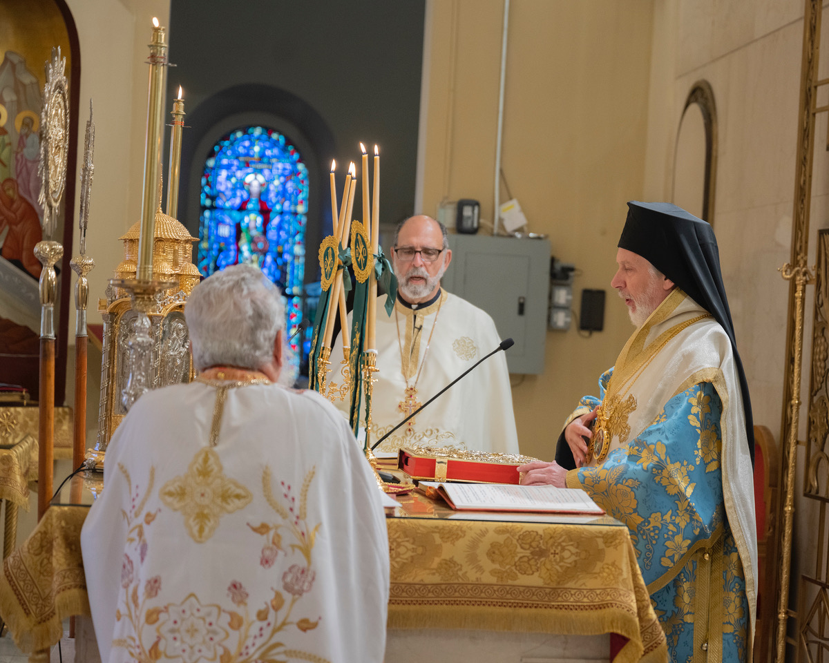 Την Κυριακή, 9 Οκτωβρίου, ο Σεβασμιώτατος λειτούργησε στον Καθεδρικό Ναό της Βοστώνης. Στην ομιλία του, ευχαρίστησε τον Σεβ. Αρχιεπίσκοπο Αμερικής κ. Ελπιδοφόρο, για την τιμητική του πρόσκληση, να συμμετάσχει ως εισηγητής στο διήμερο συνέδριο της Θεολογικής Σχολής, καθώς και τον Σεβ. Μητροπολίτη Βοστώνης κ. Μεθόδιο, με την κανονική άδεια του οποίου τέλεσε την ευχαριστιακή σύναξη, με τη συμμετοχή του προϊσταμένου του ναού Αιδ. Πρωτοπρεσβυτέρου κ. Αθανασίου Τσινίνη και του εξ Ελλάδος επισκέπτου Αιδ. κ. Βασιλείου. Τους ύμνους έψαλαν τρεις φοιτητές της Θεολογικής Σχολής του Τιμίου Σταυρού.