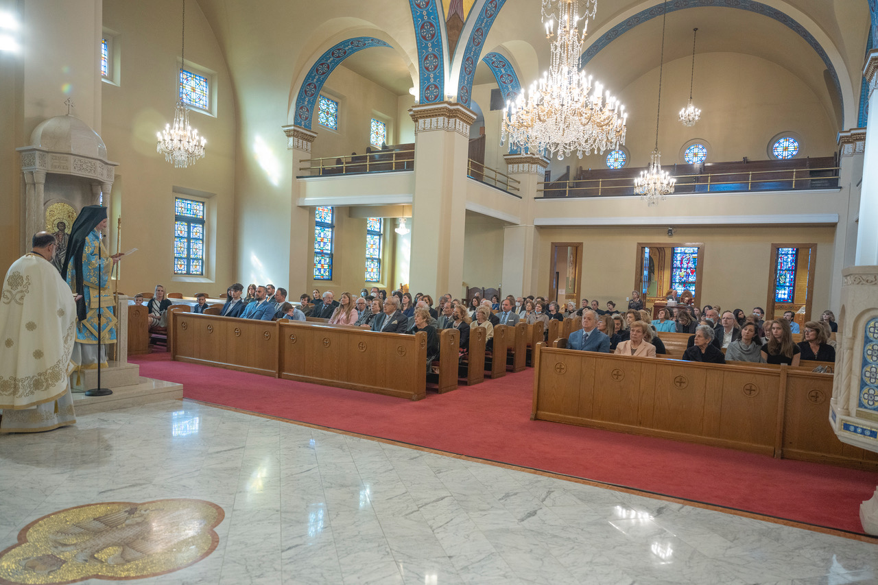 Ακολούθησε δεξίωση στις εγκαταστάσεις του ναού, την οποία προσέφεραν ευγενώς η Φιλόπτωχος Αδελφότης Κυριών και το εκκλησιαστικό συμβούλιο του ναού.