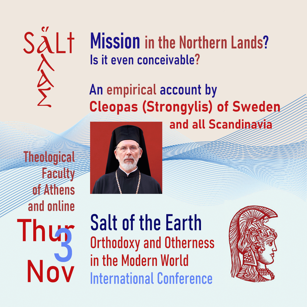 Allow me to begin by thanking the School of Theology of the National and Kapodistrian University of Athens, and Dr. Evi Voulgaraki-Pissina, the Editor-in-Chief of Salt, for their gracious invitation and enabling me to share my experiences, together with the unique challenges facing the Ecumenical Patriarchate’s northernmost eparchy, which encompasses the nations of Sweden, Norway, Denmark, and Iceland.