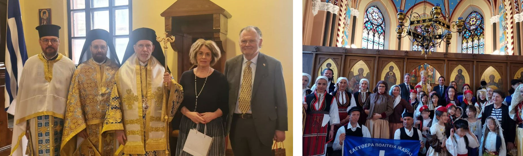 Ο Σεβασμιώτατος προσέφερε ως ευλογία στον Δρ. Διβινή, στην Εριτ. κ. Ευγενία Νοΐδου, πρώην Διευθύντρια του Ελληνικού Σχολείου του Καθεδρικού Ναού Βοστώνης, στην Πρόεδρο του Λυκείου Ελληνίδων Κατερίνης Εριτ. κ. Πολυτίμη Σταματοπούλου Παπακώστα και τον εκπρόσωπο του Λυκείου Ελληνίδων Ικαρίας, από ένα αντίτυπο της Πατριαρχικής Επισκέψεως στην Στοκχόλμη.