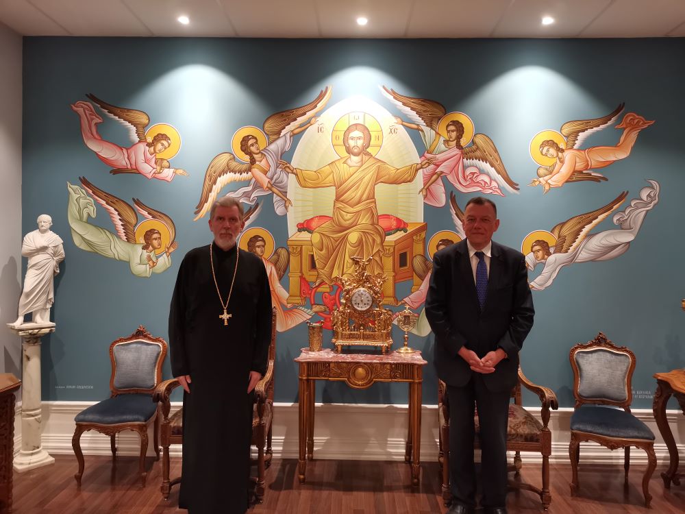 Με αισθήματα χαράς και τιμής, ο Ποιμενάρχης εδέχθη τον κ. Κοτροκόη, τον οποίο ξενάγησε στον αποκατασταθέντα Καθεδρικό Ναό του Αγίου Γεωργίου, στο Μουσείο Ελληνοχριστιανικής Κληρονομιάς, όπου αντάλλαξαν σκέψεις για σύγχρονα ανακύπτοντα θέματα ανά τον κόσμο και στην συνέχεια τον παρουσίασε στα μέλη της νεολαίας.