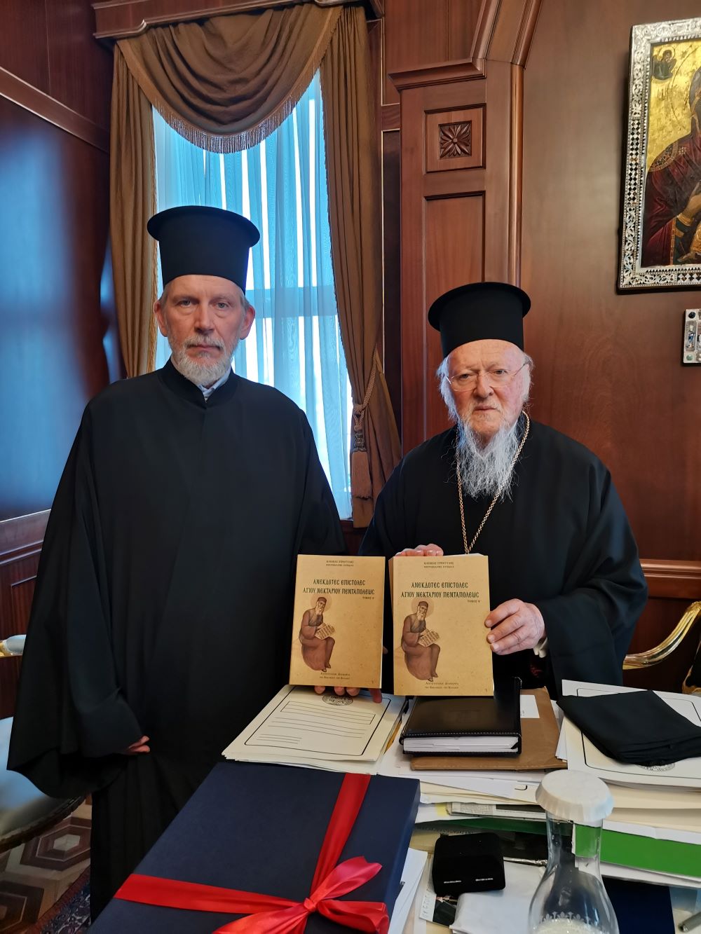 Ο Σεβ. Μητροπολίτης Σουηδίας και πάσης Σκανδιναυΐας κ. Κλεόπας, προσκληθείς υπό της Α. Θ. Παναγιότητος, του Οικουμενικού Πατριάρχου κ.κ. Βαρθολομαίου, προκειμένου να συμμετάσχει και με άλλους Ιεράρχες στην επέτειο των εορτασμών της συμπληρώσεως 32 ετών από της εκλογής της Σεπτής Κορυφής στον Πρώτο Θρόνο της υπ’ ουρανόν Ορθοδοξίας, με την ευκαιρία αυτή, επέδωσε στον Παναγιώτατο το άρτι εκδοθέν δίτομο έργο του με τίτλο: «Ανέκδοτες Επιστολές Αγίου Νεκταρίου Πενταπόλεως».