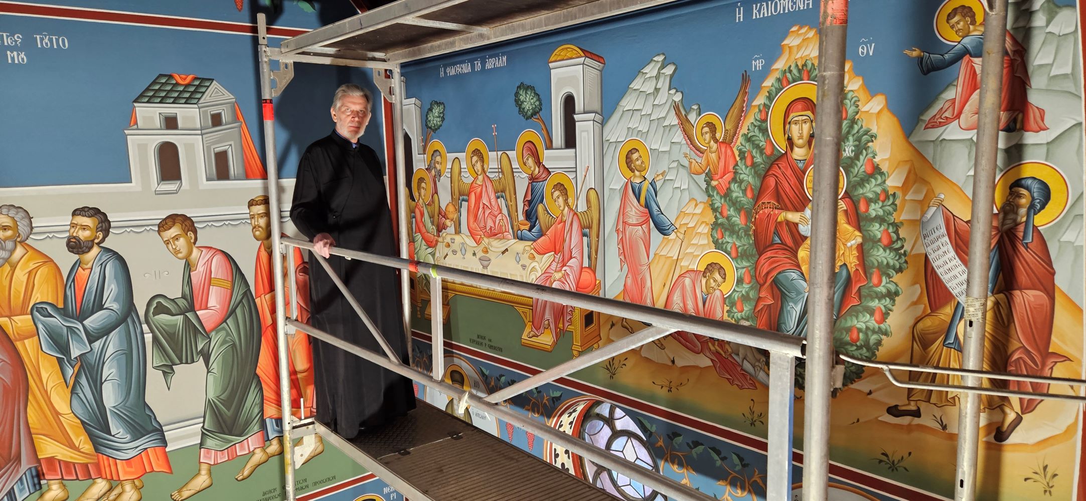 On the afternoon of Saturday, March 9, 2024, Metropolitan Cleopas traveled to Oslo to personally oversee the installation of the frescoes, met with the aforementioned iconographers, and viewed the work taking place for the complete renovation of the church hall.