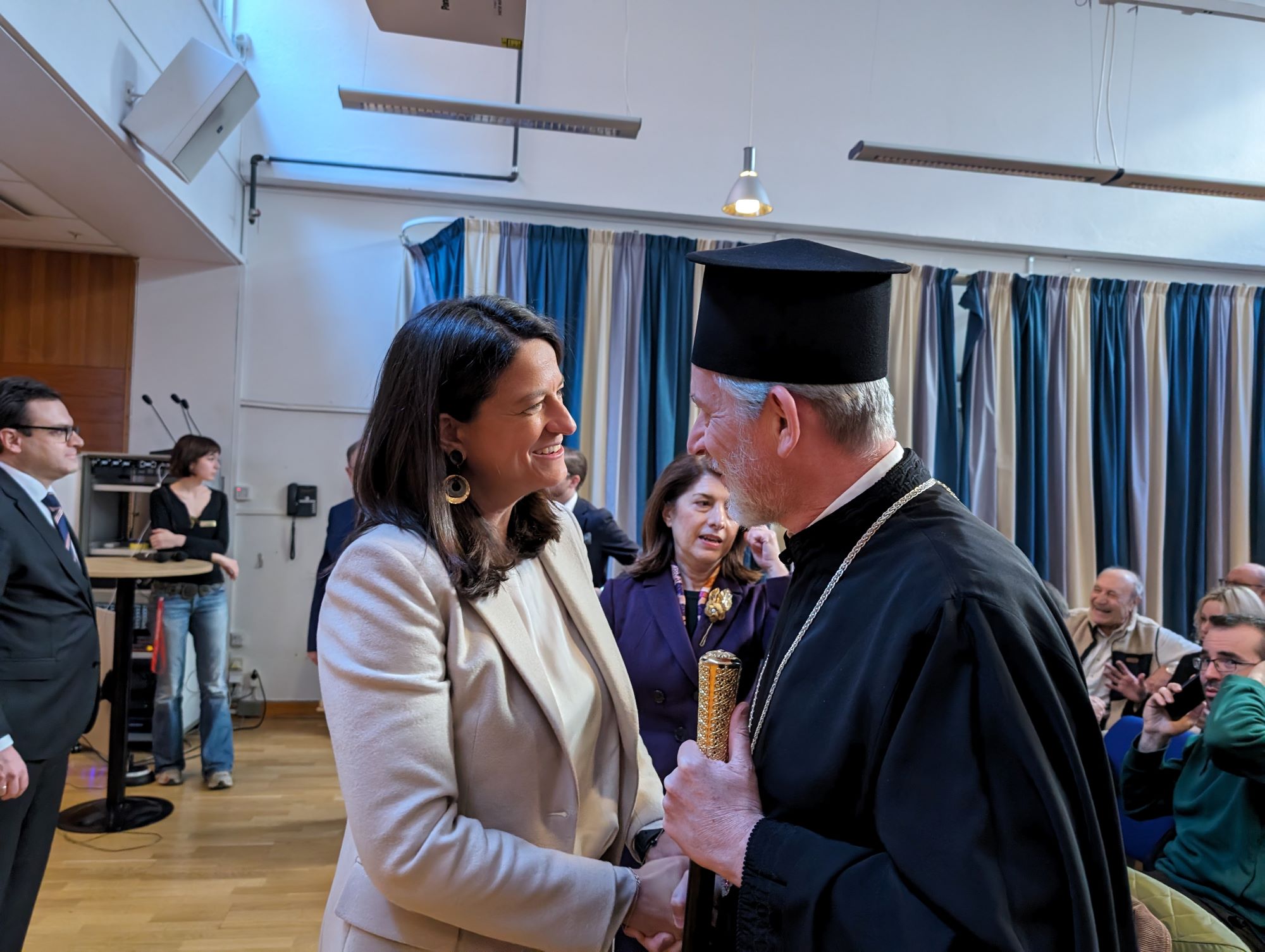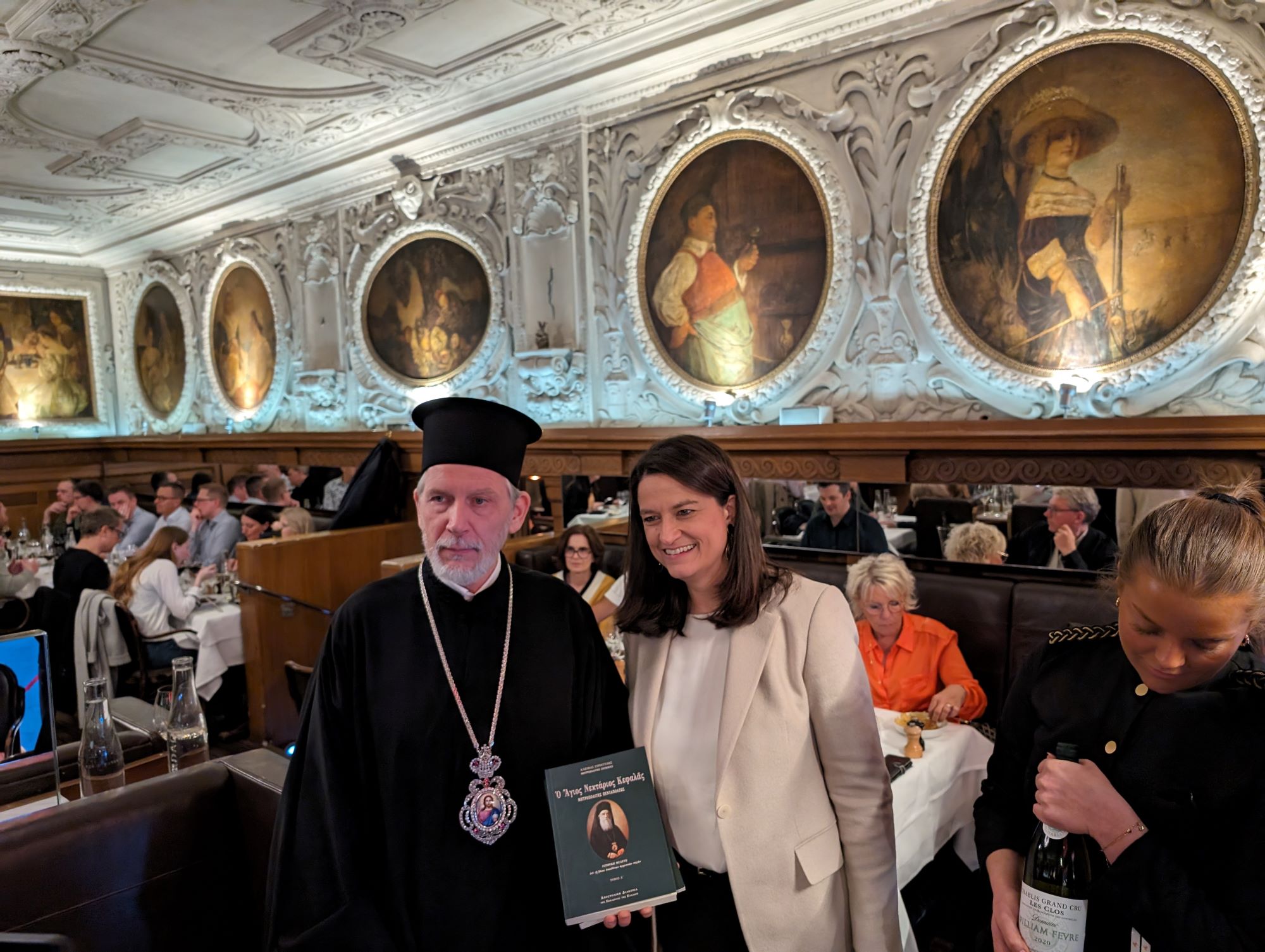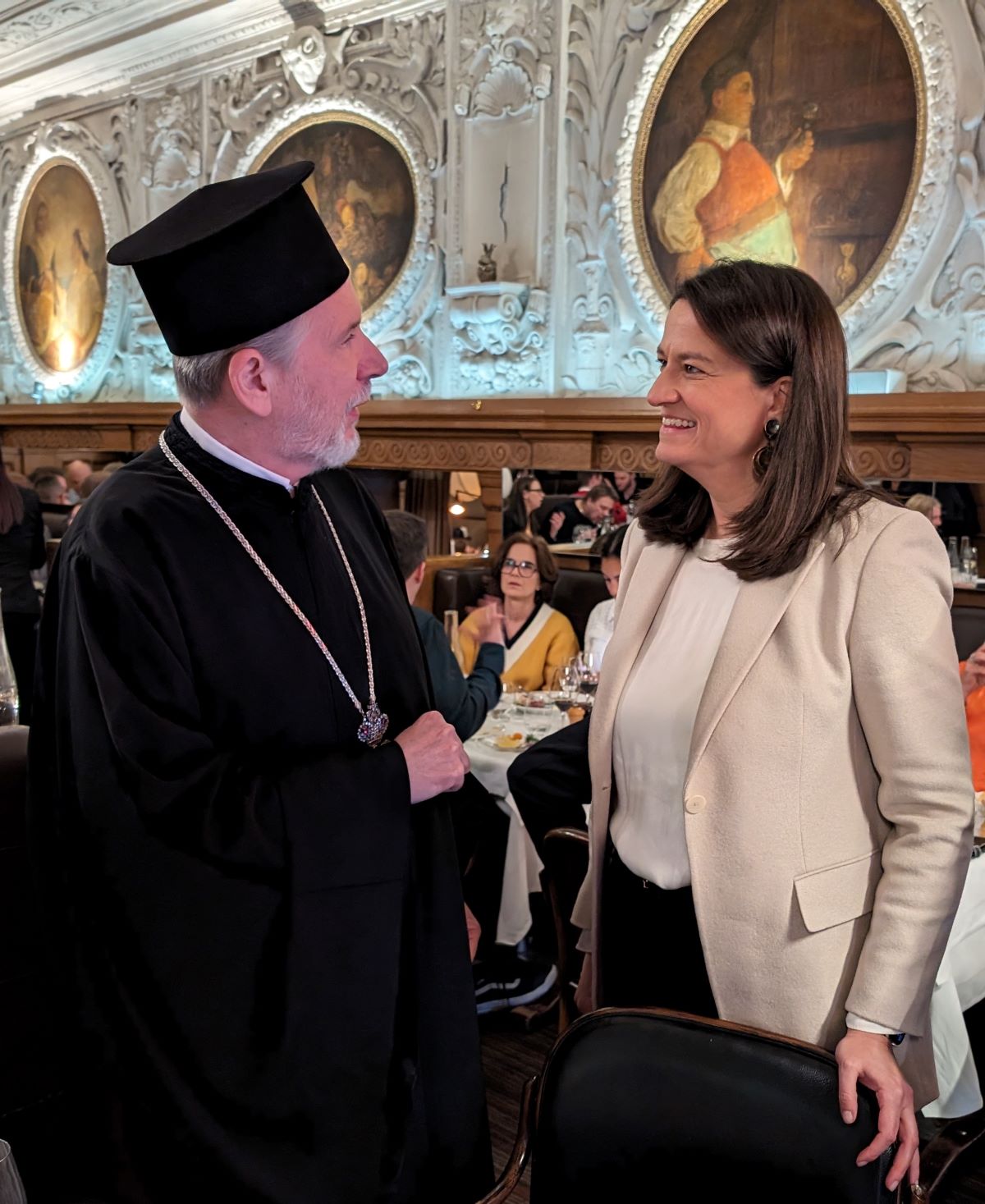 Κατά την διάρκεια του δείπνου, ο Σεβασμιώτατος μετέφερε στην Εξοχωτάτη Υπουργό τις εγκάρδιες ευχές της Α. Θ. Παναγιότητος, του Οικουμενικού Πατριάρχου κ.κ. Βαρθολομαίου.