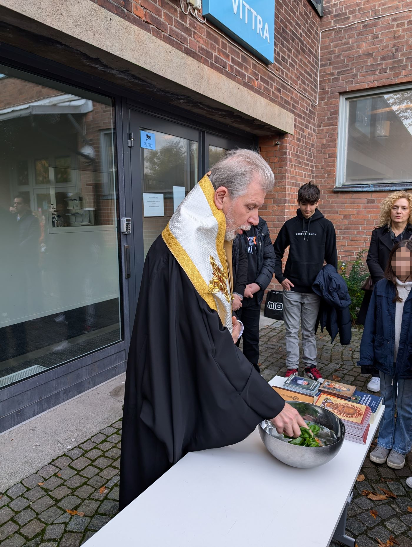 Με την παρουσία αρκετών μαθητών, των γονέων και διδασκάλων τους, τελέστηκε το Σάββατο, 19 Οκτωβρίου 2024, ο αγιασμός, επί τη ενάρξει της νέας σχολικής χρονιάς, στο Ελληνικό Σχολείο της Στοκχόλμης, από τον Σεβ. Μητροπολίτη Σουηδίας και πάσης Σκανδιναυΐας κ. Κλεόπα, στον οποίο συμμετείχε και ο εφημέριος του Καθεδρικού Ναού Αγίου Γεωργίου Στοκχόλμης, Πανοσιολ. Αρχιμανδρίτης κ. Βαρθολομαίος Ιατρίδης.