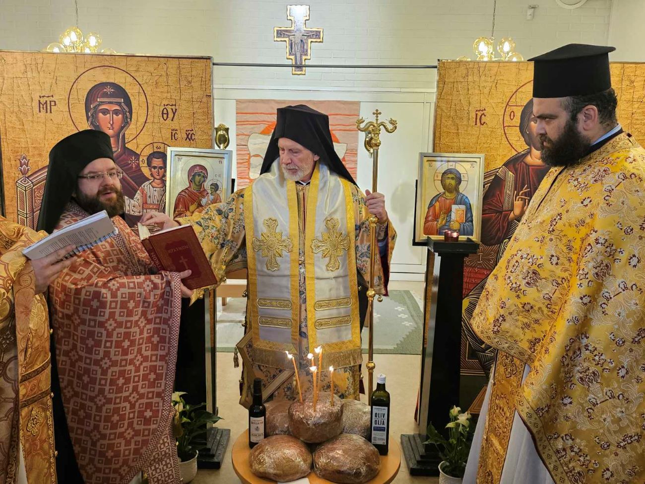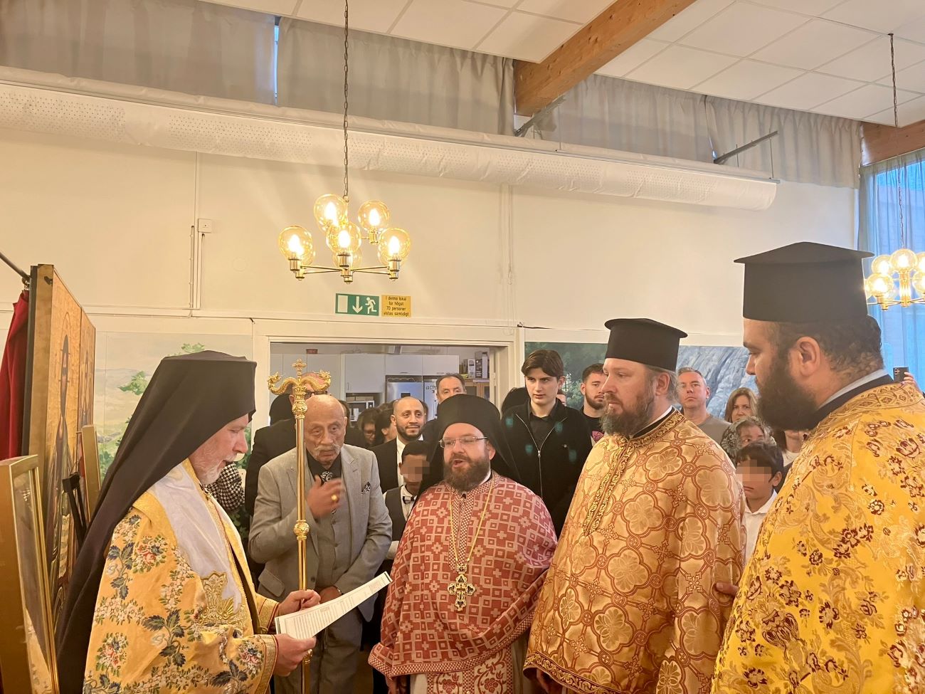 STOCKHOLM – On Saturday 26 October 2024, His Eminence Metropolitan Cleopas of Sweden and All Scandinavia celebrated the Divine Liturgy at the newly established Parish of Sts. Demetrios and Nestor in Örebro, Sweden, assisted by the Very Rev. Archimandrite Fr. Bartholomew Iatridis, Parish Priest of the St. George Cathedral in Stockholm, the Rev. Presbyter Fr. Vasilios Halil, a clergyman of the Vicariate of the Patriarchate of Antioch in Sweden, and the Rev. Presbyter Fr. George Arvanitidis. At the end of the Divine Liturgy, the thyranoixia (”opening of the doors”) ceremony was celebrated, marking the official dedication of the parish.