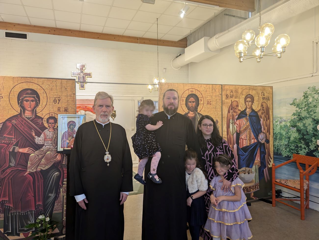 That same day, prior to the conclusion of the Divine Liturgy, which was attended by a large congregation of Orthodox Christian faithful from Sweden and Norway, the Metropolitan bestowed the office of Economos upon Fr. George Arvanitidis, in recognition of his dedicated service to the newly established parish. Rev. Arvanitidis is a married father of three daughters who served as a deacon for over nine years before being ordained a presbyter. The faithful responded enthusiastically to Metropolitan Cleopas’ gesture, crying out “axios” (worthy!) to congratulate the new Economos of the Church.