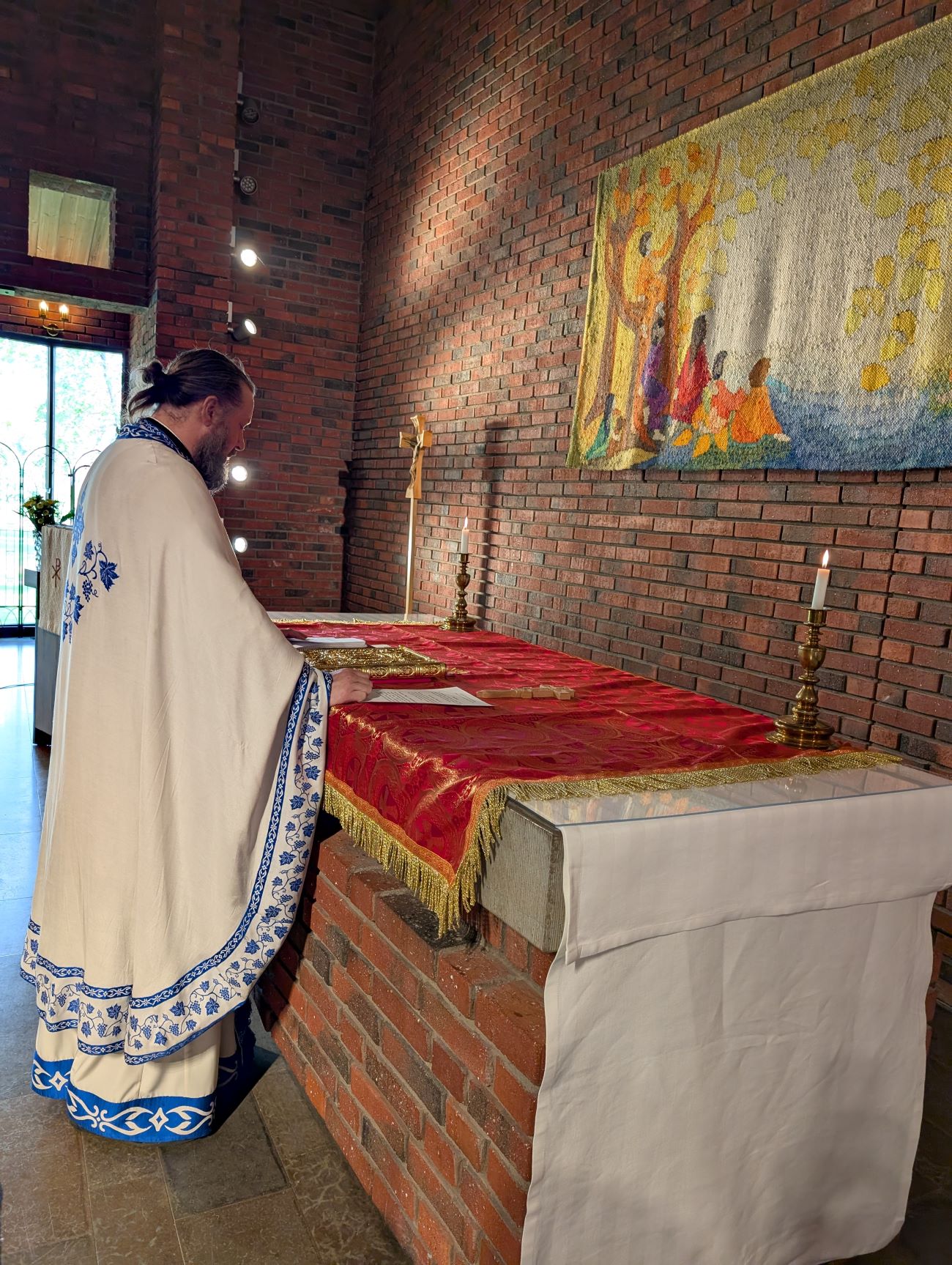 Το Σάββατο μετά την Μεσοπεντηκοστή, 17 Μαΐου 2025, ο Σεβ. Μητροπολίτης Σουηδίας και πάσης Σκανδιναυΐας κ. Κλεόπας, συνοδευόμενος από τον Πανοσιολ. Αρχιμανδρίτη κ. Βαρθολομαίο Ιατρίδη, Εφημέριο του Καθεδρικού Ναού Αγίου Γεωργίου Στοκχόλμης, και τον Αιδεσιμολ. Οικονόμο κ. Γεώργιο Αρβανιτίδη, Εφημέριο της Ενορίας Αγίων Δημητρίου και Νέστορος Örebro Σουηδίας, ιερούργησε στην ευγενώς παραχωρηθείσα υπό της Λουθηρανικής Εκκλησίας Gideonsbergskyrkan, στην πόλη Västerås, που απέχει μία ώρα με το τραίνο από την Στοκχόλμη.