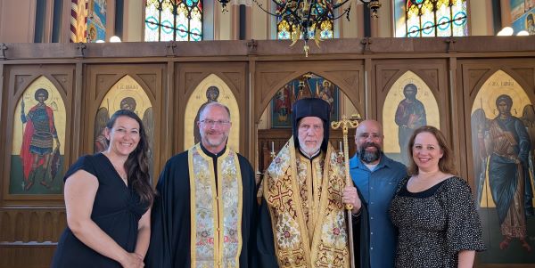 Μετά την απόλυση της Θείας Λειτουργίας και πριν την έναρξη του θείου κηρύγματος, ο Ποιμενάρχης καλωσόρισε τον παλαιό συμφοιτητή του, από την περίοδο των μεταπτυχιακών του σπουδών στην Θεολογική Σχολή Τιμίου Σταυρού Βοστώνης, συνοδευόμενο από την Πρεσβυτέρα του Στεφανία, καθώς και το φιλικό τους ζεύγος από την Νέα Υερσέη Ευστάθιο και Καλιρρόη, στους οποίους μαζί με τις ευχαριστίες για την τιμητική τους επίσκεψη επέδωσε την τρίγλωσση έκδοση της Θείας Λειτουργίας από την Ι. Μητρόπολη στην Ελληνική, Αγγλική και Σουηδική γλώσσα, και η οποία τυπώθηκε ευγενώς από την Αποστολική Διακονία της Εκκλησίας της Ελλάδος, με την μέριμνα και συμπαράσταση του Πανιερωτάτου Μητροπολίτου Φαναρίου κ. Αγαθαγγέλου, του και Γενικού Διευθυντού του μνημονευθέντος Εκκλησιαστικού Οργανισμού.