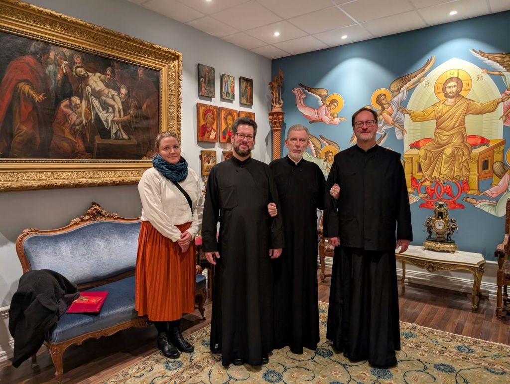 On Friday, October 10, 2025, we welcomed at the St. Georgios Cathedral of Stockholm a group from the Uspensky Cathedral Parish of the Orthodox Archdiocese of Helsinki & All Finland; Archpriest Rev. Fr. Teo Merras, Protodeacon Rev. Juha Lampinen, Diaconal worker Ms. Anneli Tamme (originally from Estonia) and Diaconal worker Ms. Paula Ahonen.