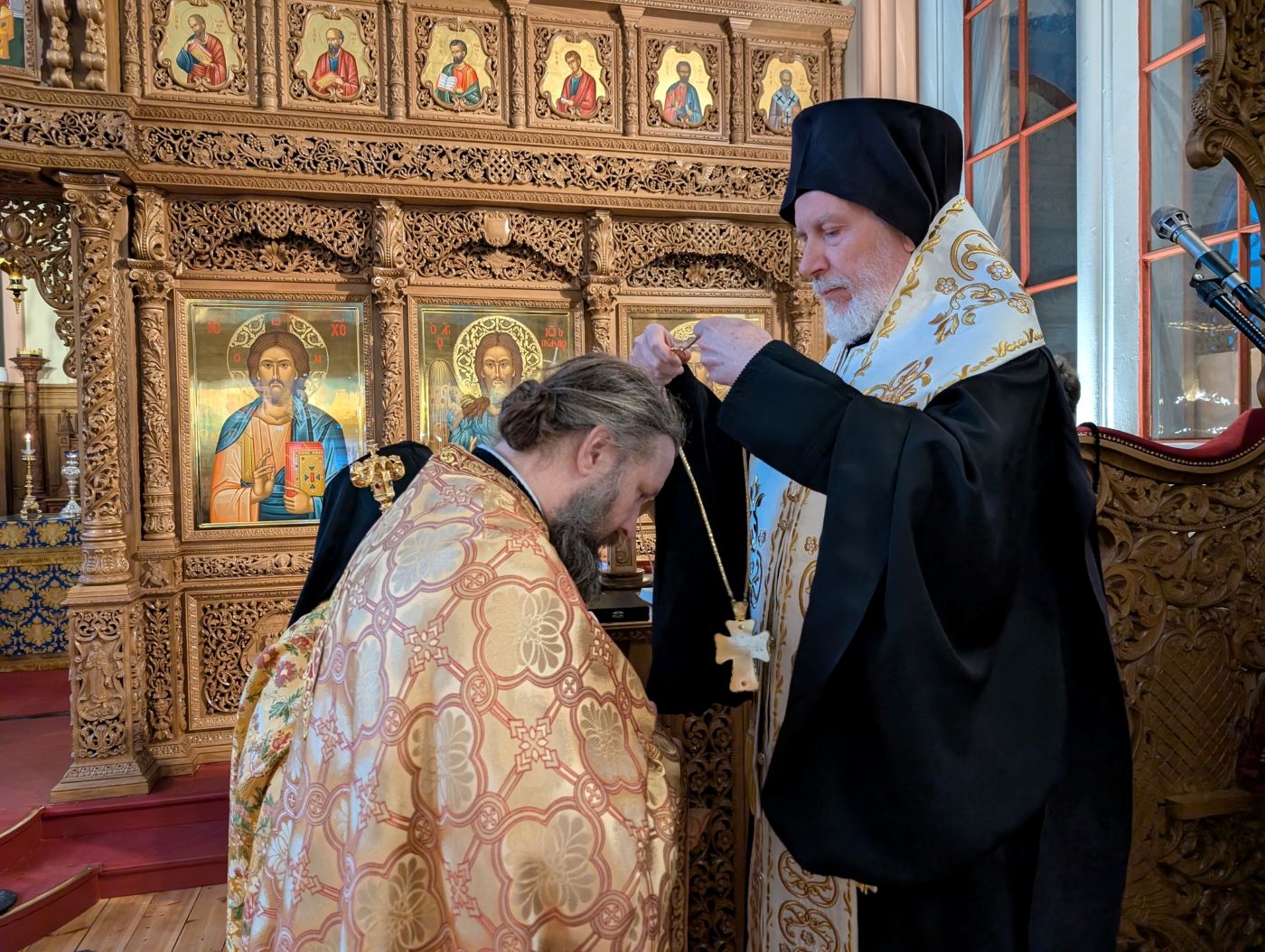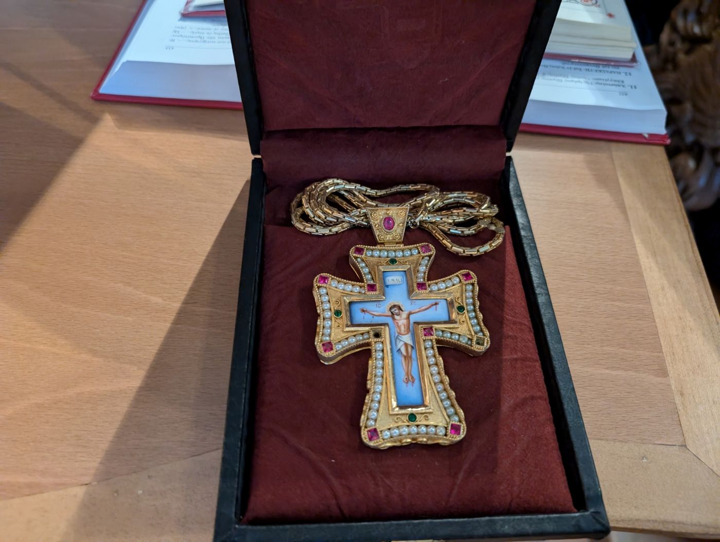 Για όλους αυτούς τους λόγους, θα τον περικοσμήσω σήμερα με τον επιστήθιο σταυρό, ώστε να λάβει από τον Ποιμενάρχη του μία ακόμα ευλογία και να συνεχίζει, με τον ίδιο και περισσότερο ζήλο, να εργάζεται προς δόξαν Θεού και για την πνευματική ανάπαυση των ανθρώπων, έχοντας τη δύναμη του Τιμίου και Ζωοποιού Σταυρού. Αμήν!