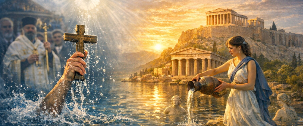 Here lies a crucial bridge and boundary between “initiation/mystagogy” and “sacrament.” Ancient Greece possesses forms of initiation: transition, purification, light as the climax of experience. The Church speaks of mystery; not merely a human ritual path, but divine energy acting truly in creation through the sanctification of the waters and in the human person as personal, inner illumination. Theophany proclaims that the Light has come, has been revealed, and sanctifies.