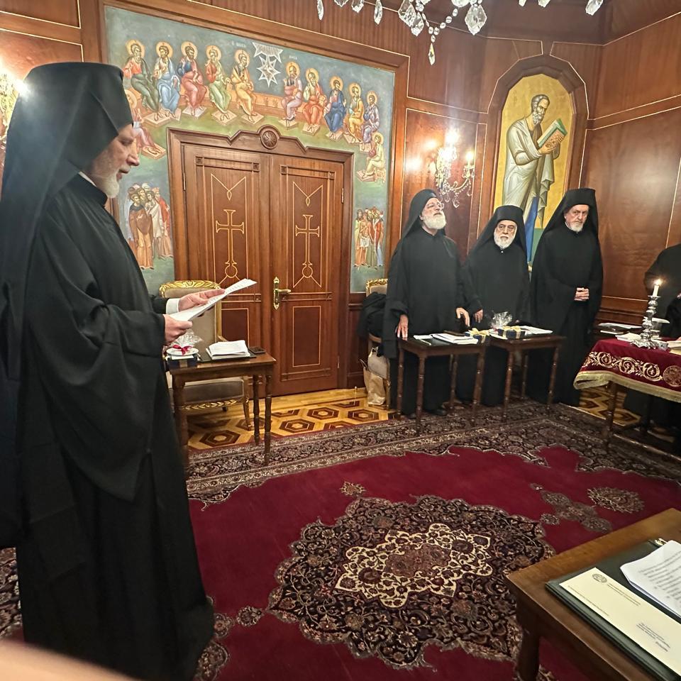 Τοῖς σεβασμίοις Συνοδικοῖς Ἀρχιερεῦσιν τοῦ ὑψηλοῦ τῆς Οἰκουμένης τούτου Θρόνου εὐγνώμονας ἀποδίδω εὐχαριστίας διά τήν ἁγίαν ψῆφον αὐτῶν, ἐπαναλαμβάνων τήν Παύλειον ρῆσιν: «Καθώς ἐστίν δίκαιον ἐμοί τοῦτο φρονεῖν ὑπέρ πάντων ὑμῶν διά τό ἔχειν με ἐν τῇ καρδίᾳ ὑμᾶς» (Λουκ. 2,8), ἀλλά καί τῆς ἡμέρας «πάντοτε ἐν πάσῃ δεήσει Ὑμῶν ὑπέρ πάντων ἡμῶν, μετά χαρᾶς τήν δέησιν ποιούμενοι» (Φιλιπ. 1,4).