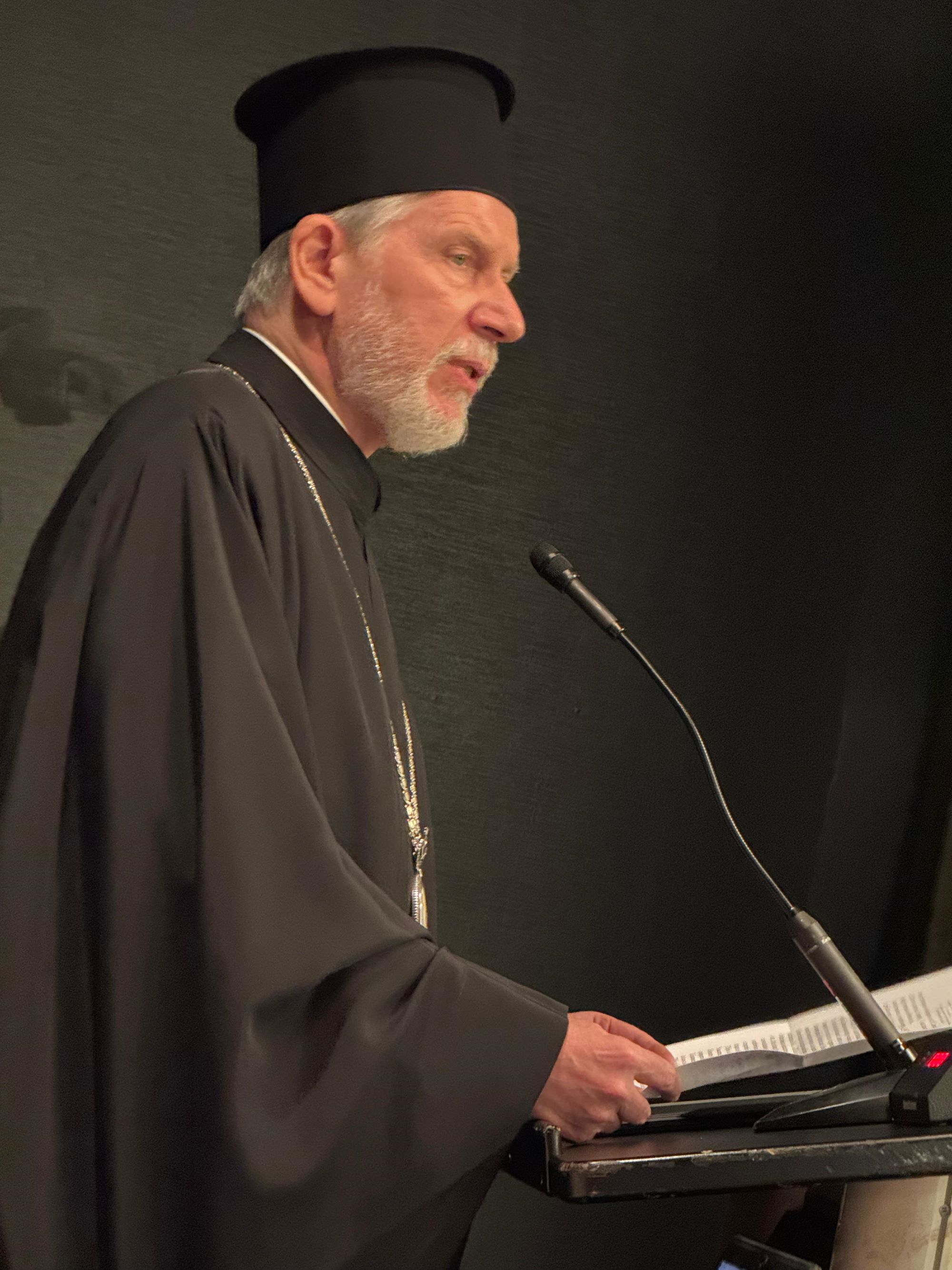 Με την ευλογία της Αυτού Θειοτάτης Παναγιότητος, του Οικουμενικού Πατριάρχου κ.κ. Βαρθολομαίου, του οποίου τις Πατριαρχικές ευχές και ευλογίες μεταφέρουμε, με τον π. Ιάκωβο, προς όλους σας, τα πιστά τέκνα της Μητρός Εκκλησίας, λαμβάνω την ευκαιρία, ευχαριστών τον Σεβ. Αρχιεπίσκοπο Winnipeg κ. Ιλαρίωνα για την τιμητική παραχώρηση του λόγου, να σας καταθέσω ορισμένες σκέψεις, αναφορικά με το απόσπασμα της προς Τίτον Επιστολής του Αποστόλου Παύλου, το οποίο αναγνώστηκε κατά την διάρκεια της Θείας Λειτουργία, και το οποίο, αν και φαίνεται ποιμαντικό, εν τούτοις συνδέεται βαθιά με την ουσία της σημερινής εορτής, γιατί μάς παρουσιάζει το πνεύμα των Πατέρων της Εκκλησίας, διάκριση, αλήθεια, αγάπη και πράξη.