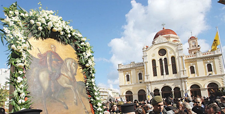 Μόλις όμως άρχισε η ανάγνωση εμφανίσθηκε ένας ασπρομάλλης ηλικιωμένος ιππέας που έτρεχε γύρω από το ναό κραδαίνοντας το ξίφος του και κυνηγώντας τους επίδοξους σφαγείς οι οποίοι τράπηκαν πανικόβλητοι σε φυγή. Έτσι σώθηκαν οι πολύπαθοι Χριστιανοί του Ηρακλείου από τον φοβερό κίνδυνο.