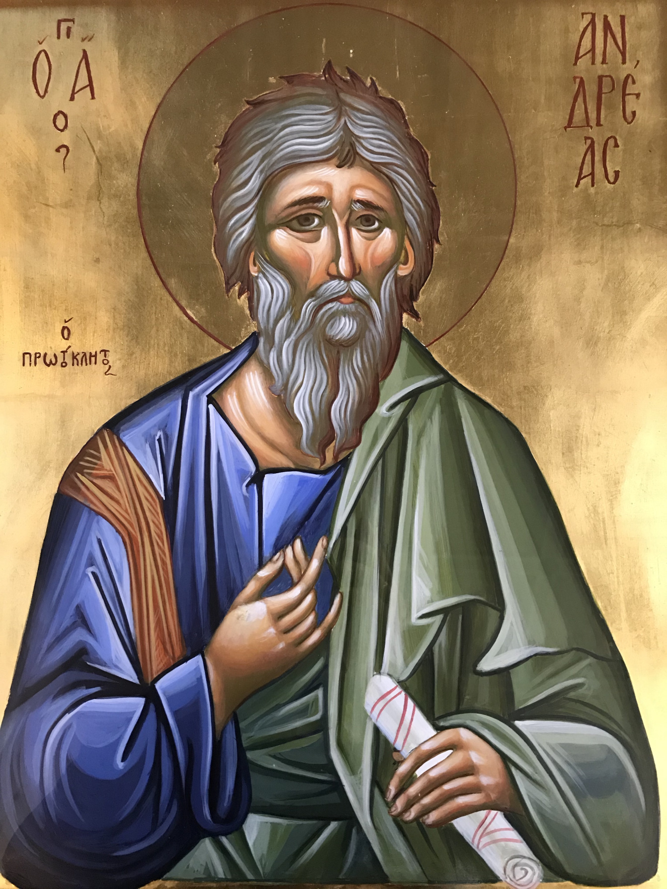 Αγιογραφία Αγίου Ανδρέα. Καθιερώθηκε στην ενορία Αγίου Ανδρέα Μάλμε, στον ναό S:ta Maria kyrka, τον Νοέμβριο του 2019, προσφορά των ενοριτών.